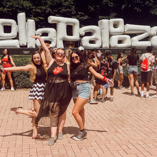 After that we decide it was time for lunch and so we decided to grab some Chipotle, which is always great, but I wish I would've tried something there that I couldn't get back home like the booth that was selling Grilled Mac and Cheese sandwiches🤤 hopefully another time! Then we moved onto to shopping and chose the indoor, air-conditioned building because DUH! AIR CONDITIONING! Did I mention its hot in August in Chicago? Once we finished shopping, we did some more walking around and found Dean Lewis performing so we stayed and watched his set for a while and danced a little and then found this awesome wall that was just filled with different kinds of graphics that represented Lollapalooza! That’s probably my favorite photos I got of myself that day (picture below).